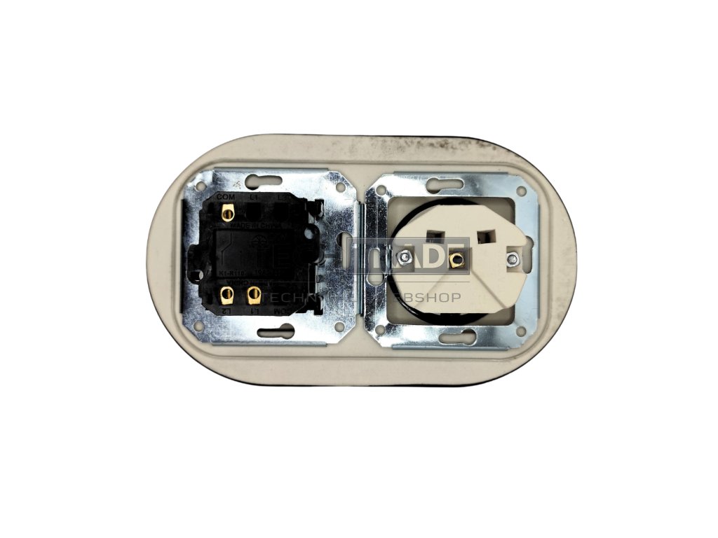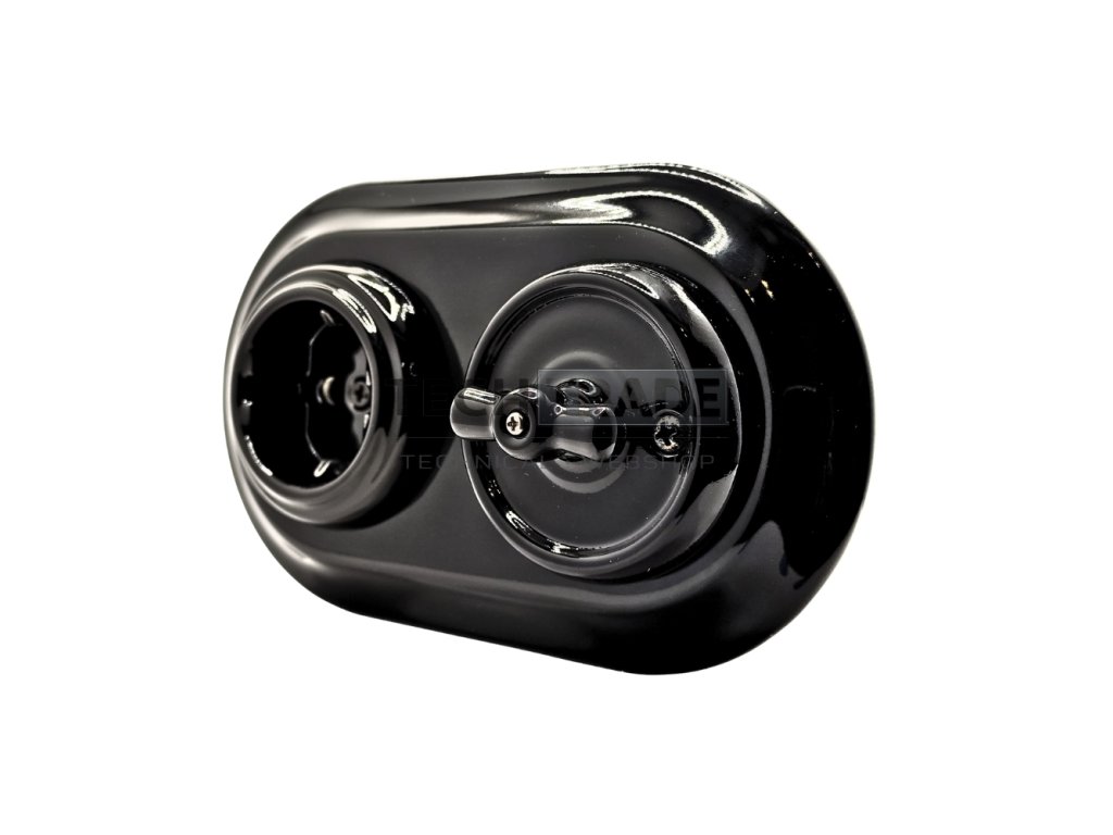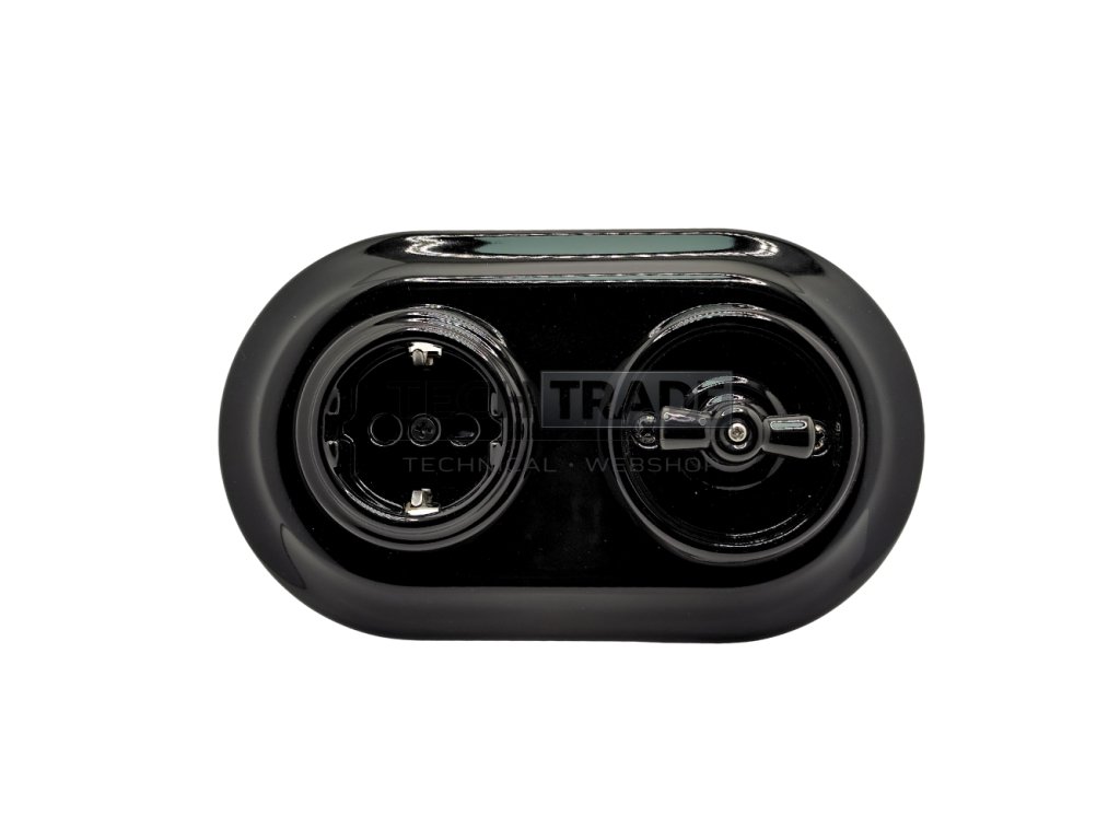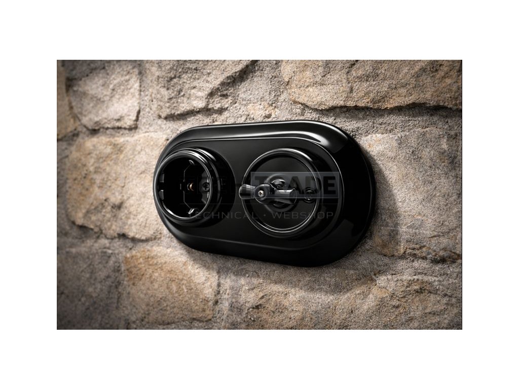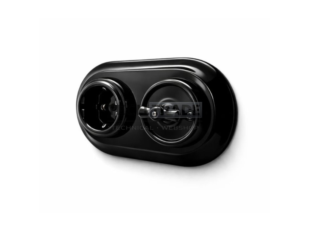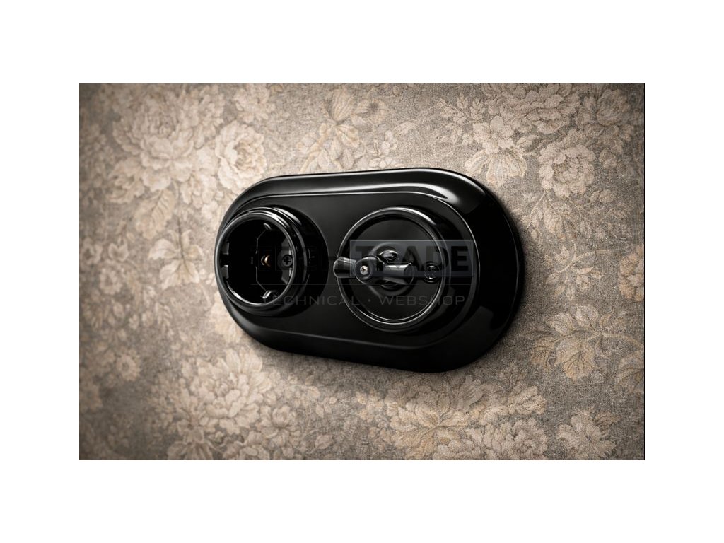 Egyáramkörös Kapcsoló (101) + 1 Konnektor – Fekete Porcelán Kerettel Ceramicon