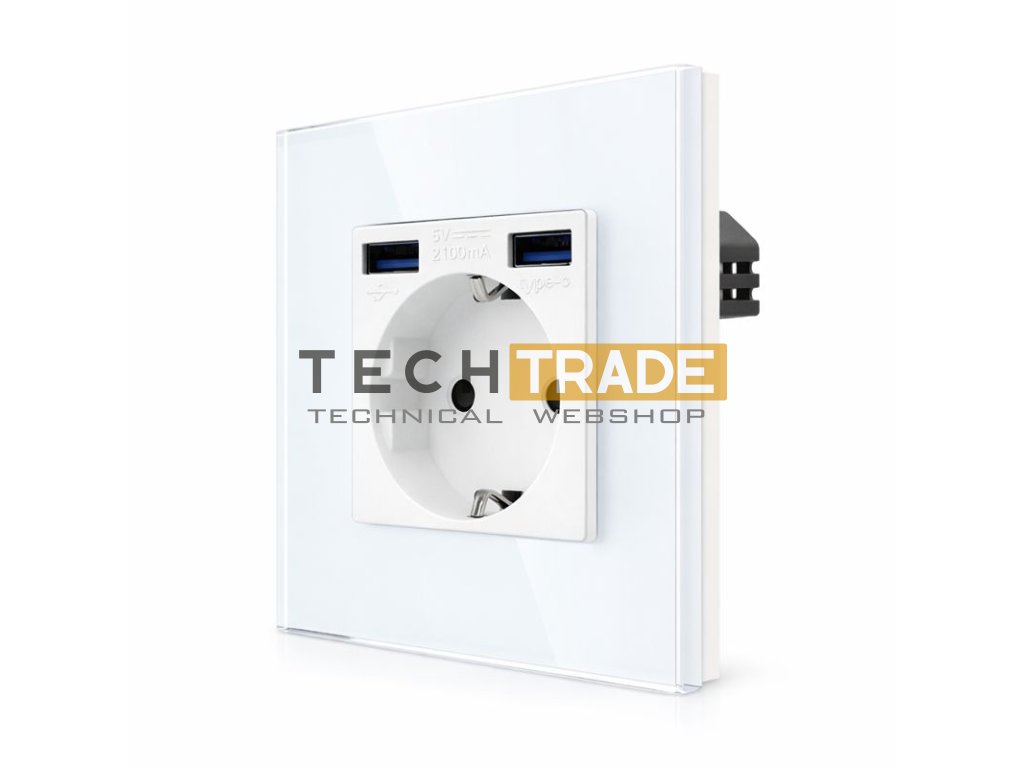 A konnektor üveg keretes, komplett kivitel, így az USB-aljzat és a hálózati dugalj egy egységet alkot, modern és egységes megjelenést biztosítva.