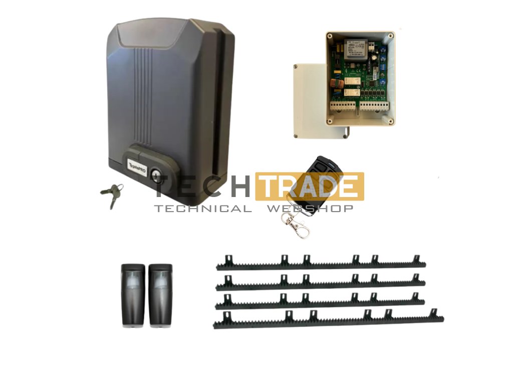 Családi és társasházakhoz, 600kg-os kapuhoz. Komplett beépítésre kész tolókapu szett. (A képen látható vezérlés doboza elfér a motor burkolata alatt)