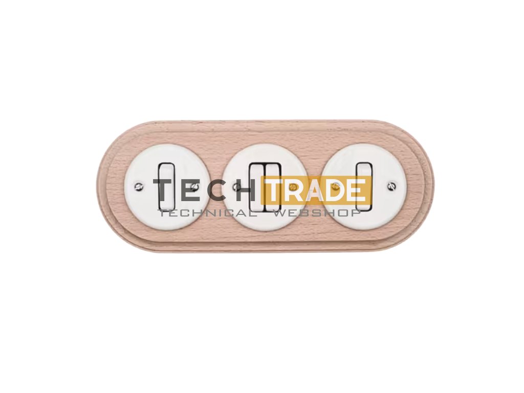 Fehér porcelán kapcsolók + világos hármas fa sorolókerettel