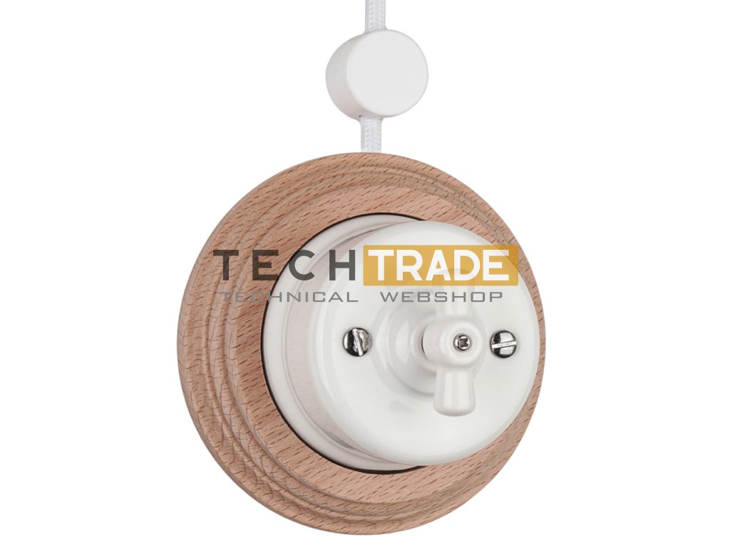 A TechTrade Retro Porcelán fekete falon kívüli kapcsolója a klasszikus múlt hangulatát hozza vissza modern kivitelben. Az eszköz prémium minőségű porcelánból készül, amelyet egy sötét, valódi fa keret egészít ki – így válik minden helyiségben dekoratív, látványos elemmé.