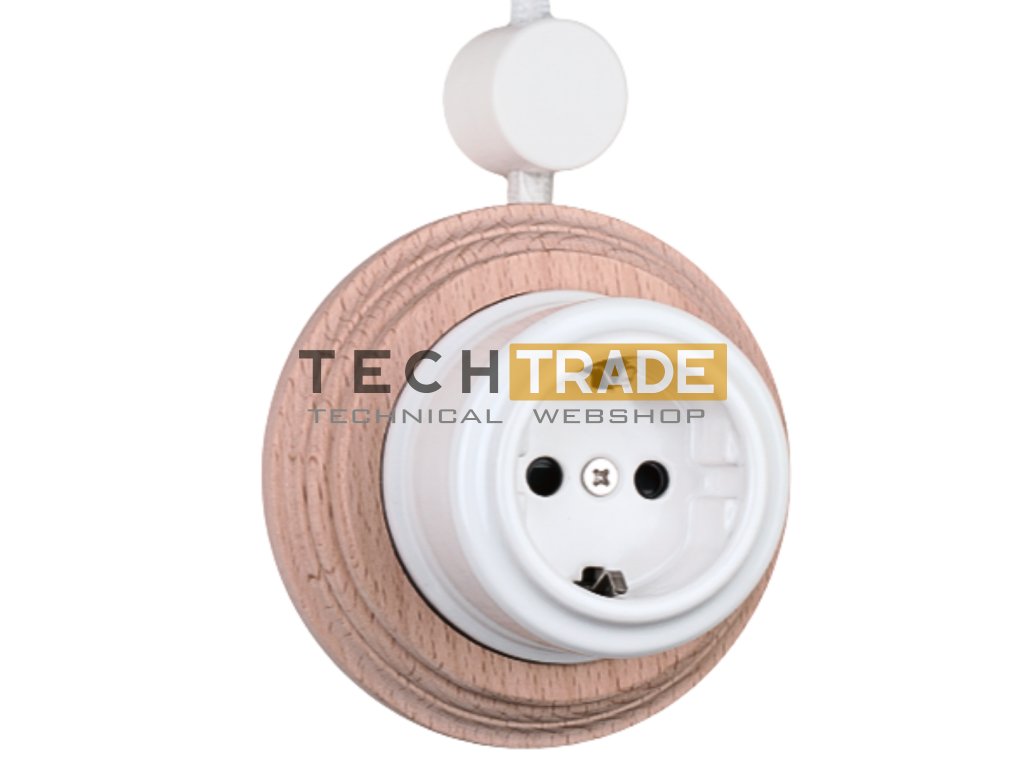 A TechTrade Retro Porcelán falon kívüli fehér dugalja a hagyományos porcelán szerelvények eleganciáját hozza vissza modern minőségben. A fényesen mázolt, tartós porcelán házhoz gondosan megmunkált világos fa keret társul, így a dugalj nemcsak funkcionális, hanem dekoratív részévé is válik a helyiségnek.