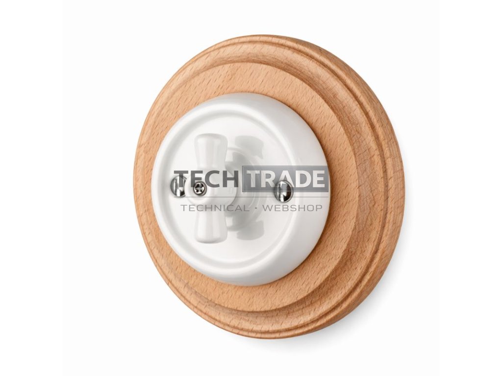 Egyáramkörös (101) Fehér Forgókapcsoló – Natúr Fa Kerettel | Ceramicon