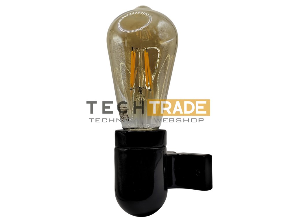 Ez a fekete porcelán E27 fali lámpafoglalat időtálló, masszív megoldás dekoratív és funkcionális világításhoz egyaránt. A tömör, erős porcelán test kiváló mechanikai stabilitást és hőállóságot biztosít, így ideális választás nyitott kialakítású, látható izzós lámpákhoz.