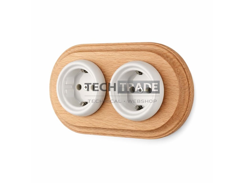 2× Fehér Konnektor – Natúr Fa Kerettel | Ceramicon