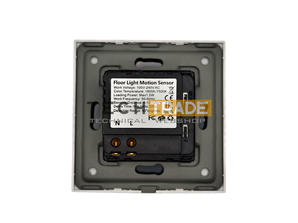 A világítás kikapcsolási ideje 90, 180 vagy 300 másodpercre állítható. Az érzékelési távolság 4–8 méter, az érzékelési szög 90°, amely ideális lépcsők és közlekedők megvilágításához.