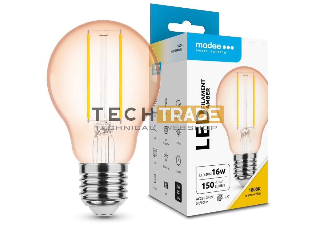 A Modee Lighting Filament Amber széria borostyánszínű üvegbúrája által az egyik legdekoratívabb LED kínálatunkban.