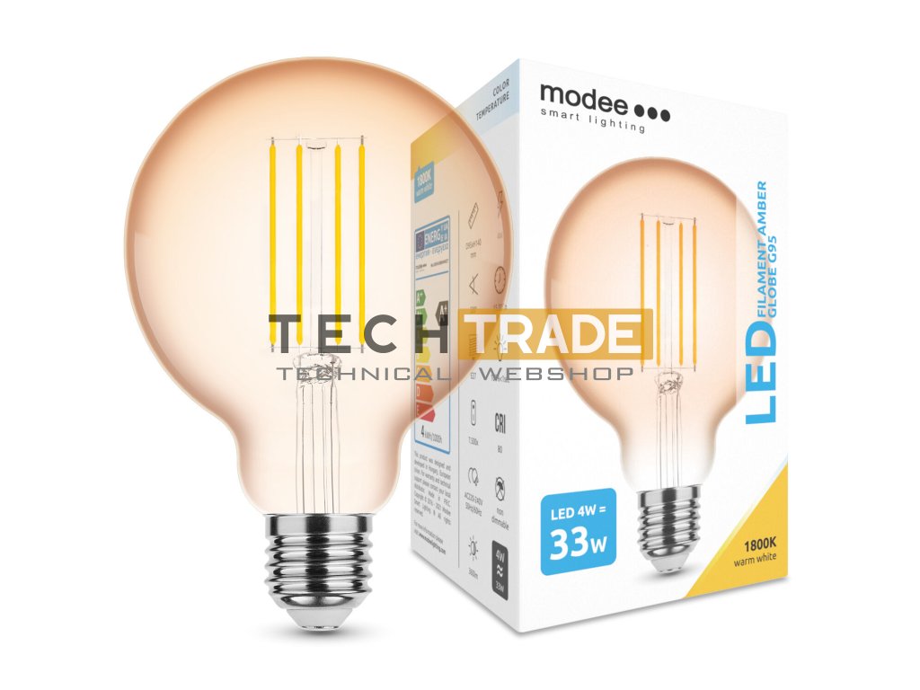Modee LED Filament Amber Globe G95 4W E27 320° 1800K (360 lumen)