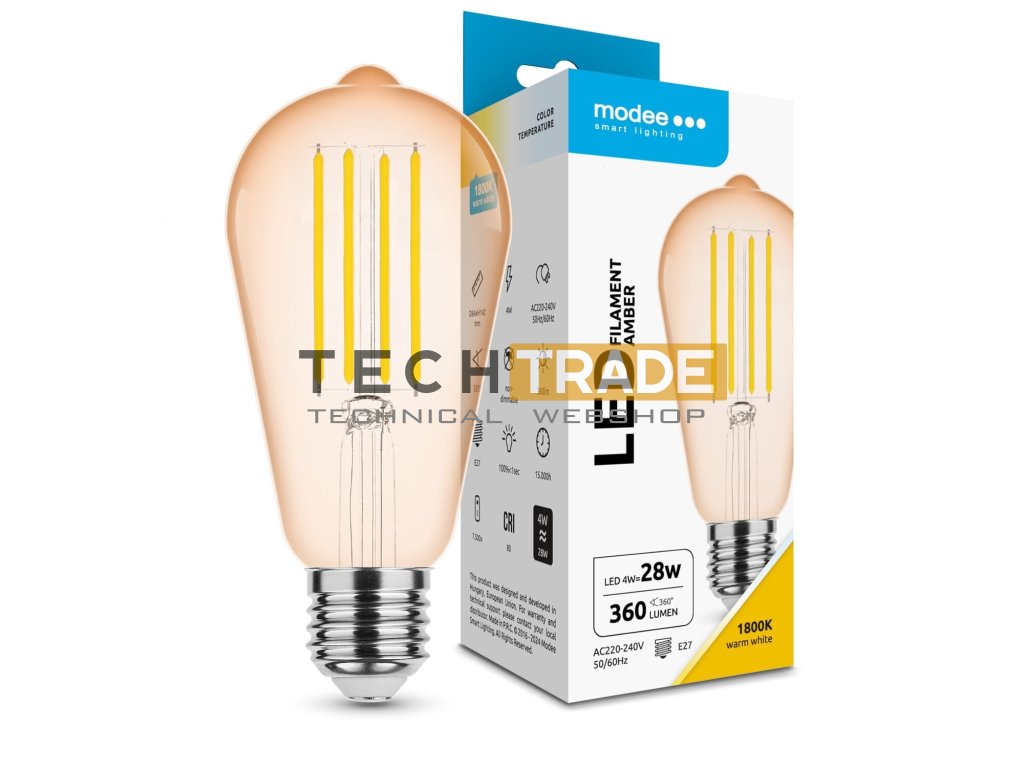 A Modee Lighting Filament Amber széria borostyánszínu üvegbúrája által az egyik legdekoratívabb LED kínálatunkban.