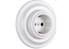 Retro fehér porcelán konnektor, falba süllyesztett egyes porcelán kerettel