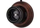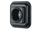 Retro fekete porcelán konnektor, falba süllyesztett egyes porcelán kerettel