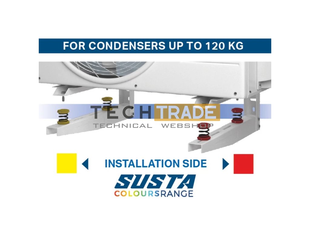 A világoskék vibrációcsillapítókat a nehezebbik oldalra (kompresszor alá) kell felszerelni.
