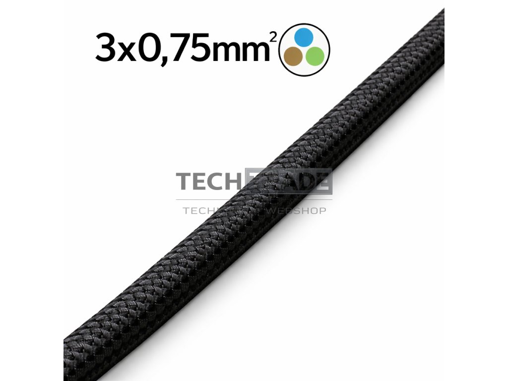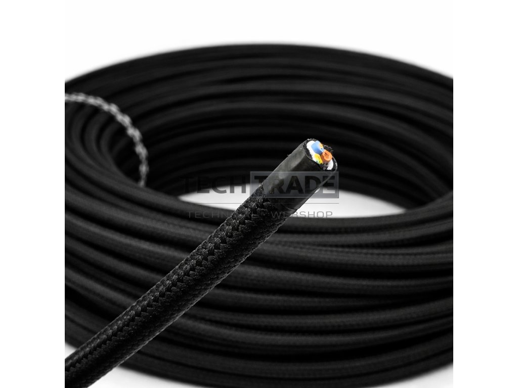 Fekete Textil Kábel – 3×0,75 mm² | TRAMA